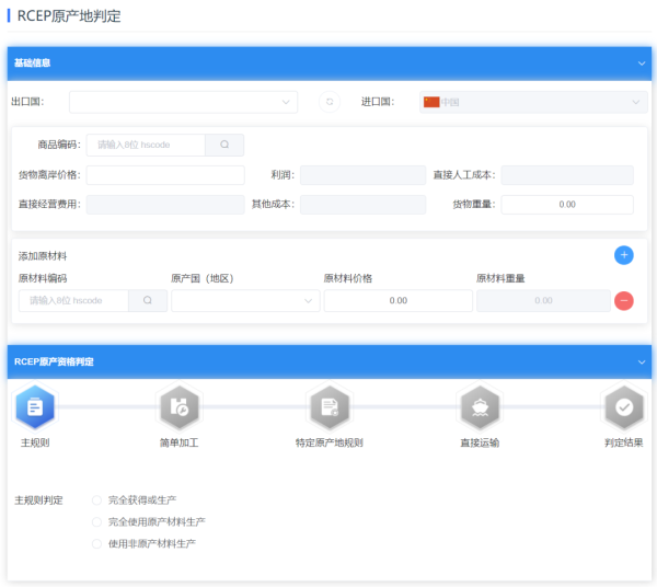 “经贸规则计算器”可以为企业比较不同经贸协定的税率高低,以图形化方式展示RCEP关税减让计划,帮助企业进行最优关税税率智能筹划。“RECP原产地智能判定”功能可以逐层引导企业对RCEP原产地主规则、补充规则、约束性补充规则进行交互性问答,完成RCEP货物原产资格智能判定,并根据出口方相关信息进一步确定RCEP原产国和对应协定税率。