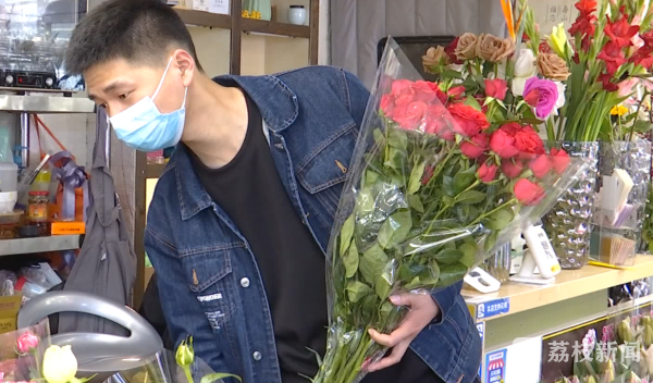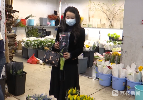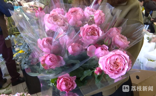 买花市民朱女士说:“买的是玫瑰,今天想和女同事们一起分享,分享这种幸福、快乐,大家都能像花一样的幸福。”买花市民张女士说:“因为觉得自己挺幸福的,就希望身边的人也都能幸福,所以想送些花,给老师,还有客户,还有身边的朋友,每天的生活能像花儿一样,色彩斑斓、五彩缤纷。”