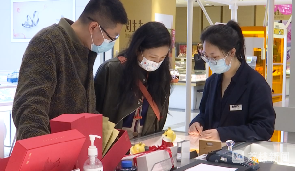 购物市民石女士说:“今天买了我们自己用的化妆品,平时都是在家带小孩,今天也借着这个特殊的节日,来犒劳自己吧。”商场里,也有带着妻子来选购的男士,纷纷借着节日的“仪式感”,送出自己的爱意。
