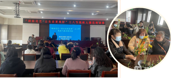 “三八节”期间,淮安市淮安区残疾人综合服务中心举办了一场“缤纷花艺——让生活更美好”三八节插花培训班。