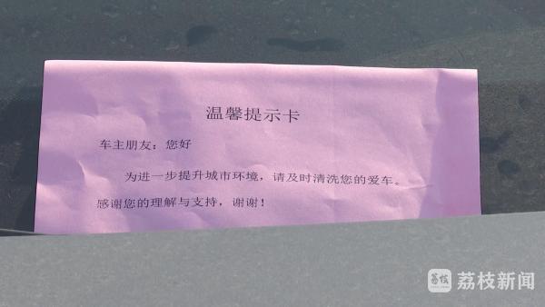 除了对渣土车等重点运输车辆严格检查外,城管部门对私家车也提出了倡议和要求,除了对管理的所有停车场进行定期冲洗外,对进出停车场车身不洁的车主进行告知,并会发放温馨提示卡,提醒车主保持好自身车辆的整洁。
