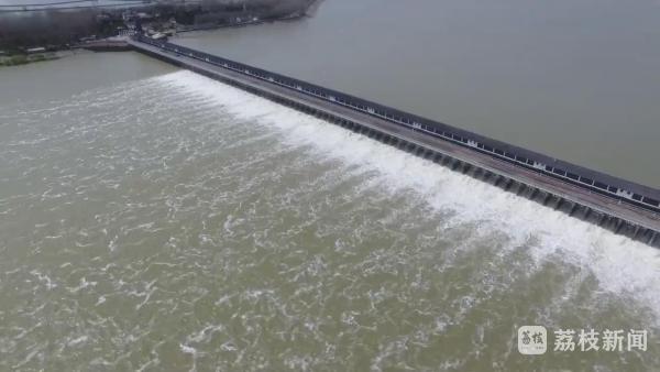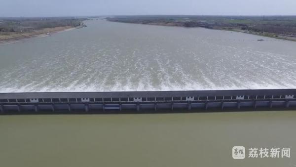 今天(3月28日)上午,在江苏省三河闸,40孔闸门正在以1200立方米每秒的流量泄洪,这也是三河闸今年首次开闸泄洪。
