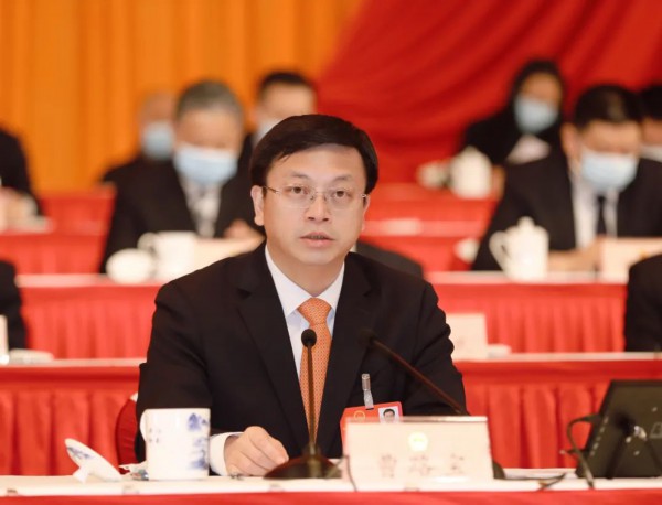 吴庆文在当选后作表态讲话。
