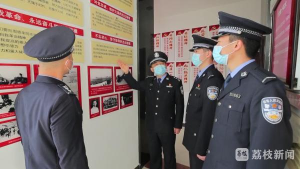 云祭扫仪式结束后,镇淮楼派出所还组织了一场革命理想信念教育活动。他们通过一幅幅主题教育展板、历史图片,学习党的伟大历程和革命先辈的丰功伟绩,在全体民警中牢固树立“守初心、担使命”的忠诚意识。 面对警旗,镇淮楼派出所民警重温《公安机关人民警察誓词》。
