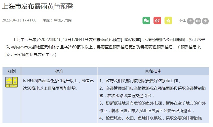 ②今天下午到夜间,上海大部地区将出现6小时累积降水量50毫米以上降水!预计后半夜开始逐渐减弱,但完全停住可能到明天上午。