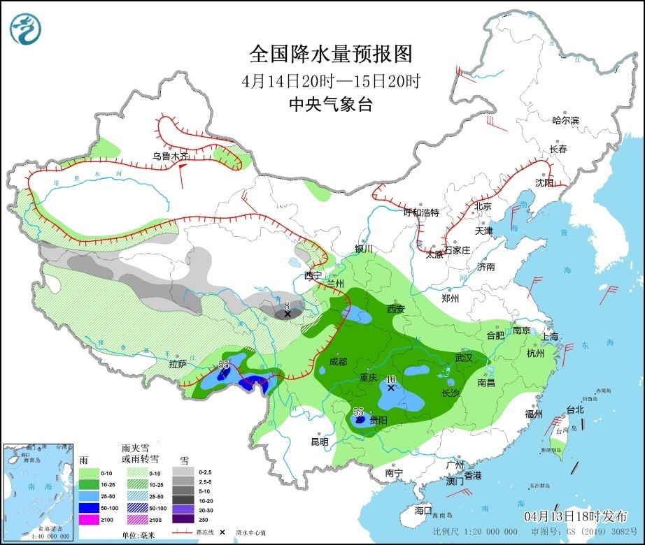 西藏东南部、甘肃东部、湖北南部、重庆南部