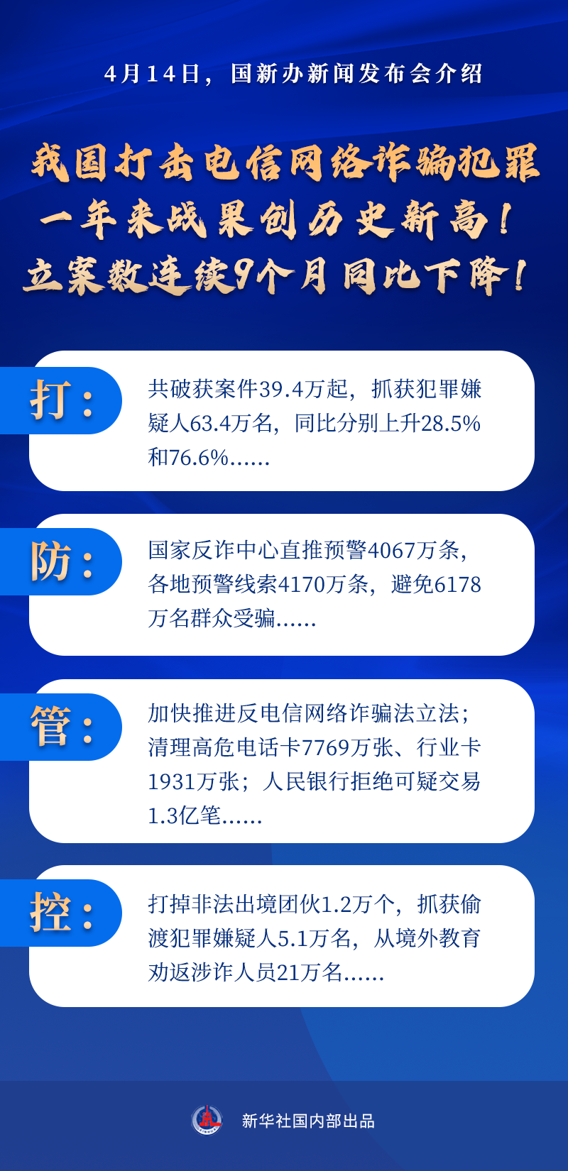 管:加快推进反电信网络诈骗法立法;清理高危电话卡7769万张、行业卡1931万张;人民银行拒绝可疑交易1.3亿笔……