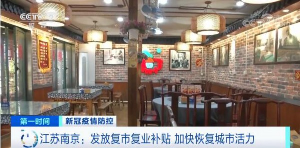南京某餐饮企业负责人 黄志光:(南京市)发展改革委这些政府职能部门主动联系我们,包括街道、社区都问我们企业有什么困难,这次给我们补贴已经到位了。