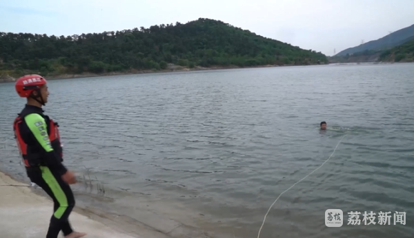 上午10点,消防救援人员来到了位于连云区的胜利水库。现场已经进入水中的消防员模拟的是一个不会游泳的落水人员。当不慎落水时,大部分人的本能反应是拼命挣扎。然而,这样做的结果却是水很快漫过了落水者的头部,几乎是在瞬间,落水者便沉了下去。而如果身体自然放松,你会发现人至少可以在水面上多停留大约10秒左右。这10秒虽然不多,却可以很好地帮助我们开展自救。