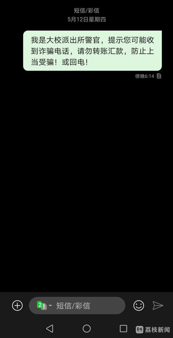 高警官赶紧编辑短信提醒黄女士,同时通知距离事发小区很近的辅警郭磊,让他先赶到黄女士家中拦截当事人转账。