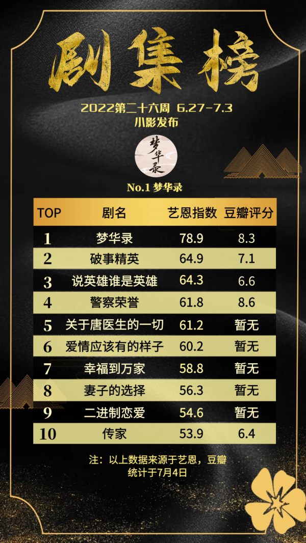 本周,《梦华录》本周仍断层领先,虽然引起部分争议,整体来说,该剧的现象级爆火在诸多背景元素的加持下,仍在情理之中。