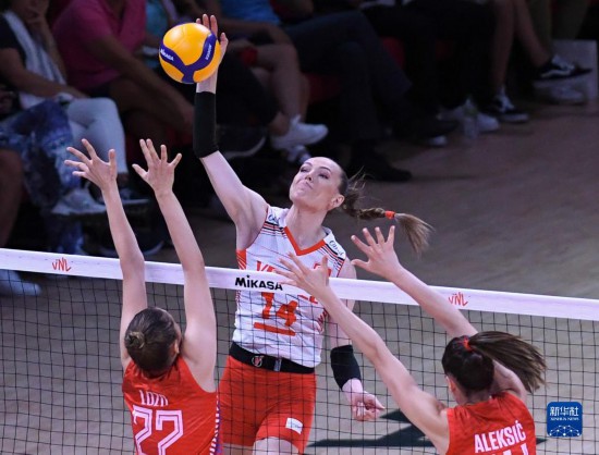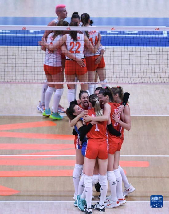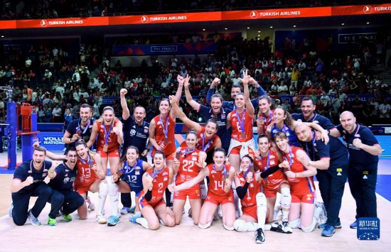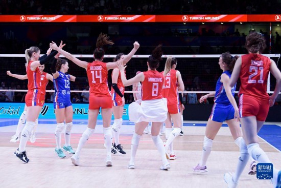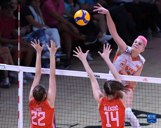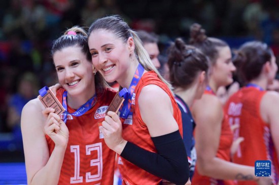 当日,在土耳其安卡拉举行的2022年世界女排联赛总决赛铜牌赛中,塞尔维亚队以3比0战胜土耳其队,获得季军。