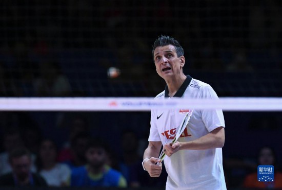 7月17日,土耳其队教练圭代蒂在比赛中指导。新华社记者 沙达提 摄