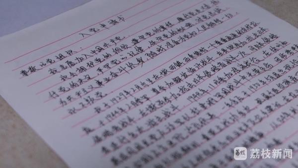 记者跟随连云港赣榆区人武部和城西镇退役军人服务站工作人员来到陈接才家中,陈老向服务站工作人员郑重的递交了入党申请书,并向工作人员诉说他的入党初心。1944年2月,年仅15岁的陈接才就参加了共产党领导的地方民兵,先后经历了抗日战争、解放战争,隶属华东军区第八纵队。从1944年2月至抗战胜利他参加了解放临沂战斗,在赣榆老县城、墩尚镇与日本侵略者开展持续斗争。淮海战役期间,在攻打徐州萧县战斗中光荣负伤,因伤势过重于1950年5月退出现役。