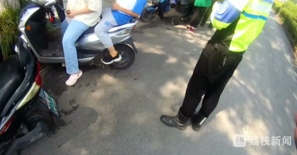 昨天(7月27日),镇江丹徒交警大队城区中队民警李宗虹执勤时发现,一名女孩不戴头盔驾驶电动车在路上行驶,车后排还坐着一名小男孩。