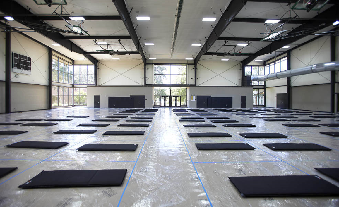 △当地时间7月26日,美国俄勒冈州波特兰市一社区中心的冷却中心里摆放着床。