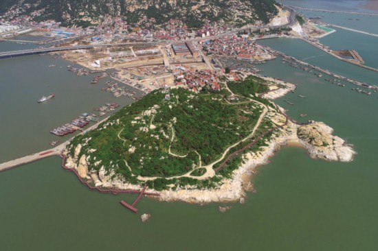 245米填海堤坝被拆除,海水重新包围羊山岛,还原海岛属性。500米东西护岸,保护了特有基岩海蚀地貌。其中最令人瞩目的就是亲海空间的整理,压在羊山岛厚厚的养殖垃圾被清理,海岛美丽的自然风光再现。