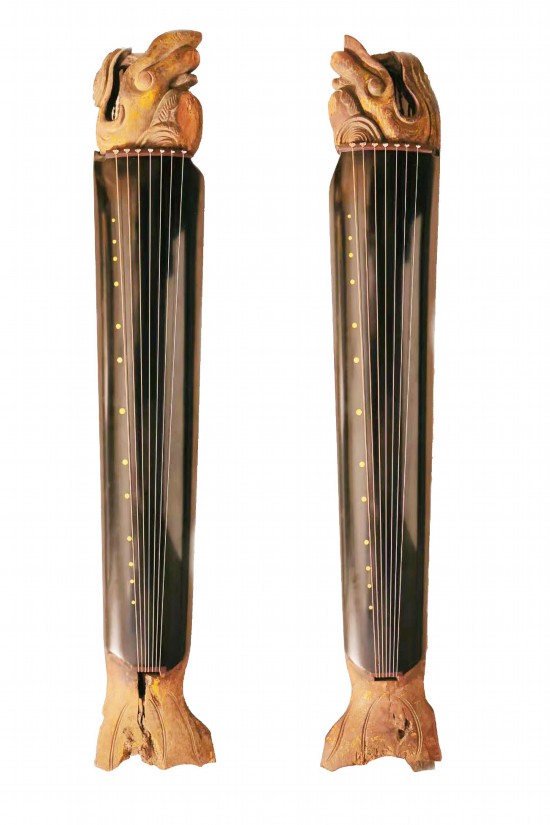 在纪念活动上,两张造型奇特的古琴,格外引人注目。这两张名为“天音”“地韵”的古琴,鳌首鱼尾,琴声朴雅。其中的“天音”是梅曰强生前最爱弹奏的一张琴。