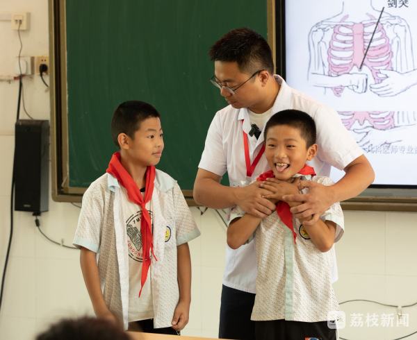 “一只手握拳在剑突下方,另外一只手托着这里,这样就能产生像气球一样的压力,高压的状态,才能把异物挤出去。”昨天(8日),在淮安市刘老庄连红军小学,一堂急救科普课程正在开展。授课老师来自淮安市妇幼保健院“萌娃健康课堂”志愿服务项目,为了让更多孩子学会“救命”技能,这个团队坚持了5年!