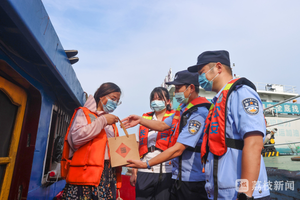 月饼包好后,民警前往船舶停泊锚地水域,将手工制作的月饼送给还在航次中跑船的船民,让手工月饼传递长江上中秋节的“平安圆和幸福甜”。