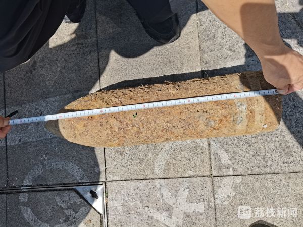南京市公安局特警支队排爆特警接到报警后,迅速赶往现场开展处置工作。经现场检查,该物体长约50公分,直径约15公分,重约40kg,整体锈蚀,装药引信完好,有较大危险性,初步鉴定为历史遗留152型榴弹,排爆特警迅速将其转移后进行专业处置。