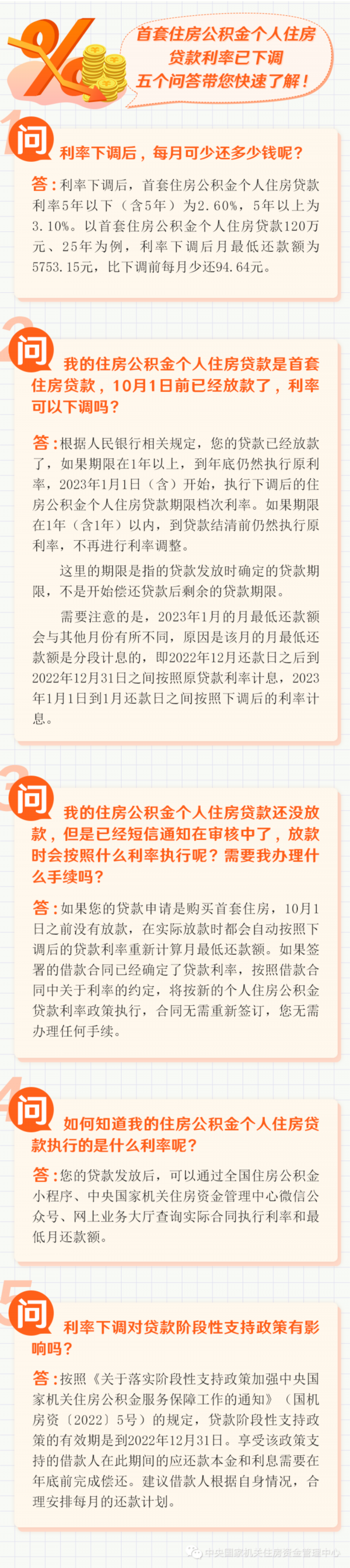 原标题:借款人速看!关于首套个人住房公积金贷款利率下调后的问答