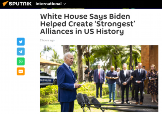 “白宫称,拜登帮助建立起美国历史上‘最强大’的联盟。”俄罗斯卫星通讯社以此为题,关注白宫当地时间27日发布的一则有关北约的推特。俄媒这则报道同时重申,北约是旨在对抗的联盟。