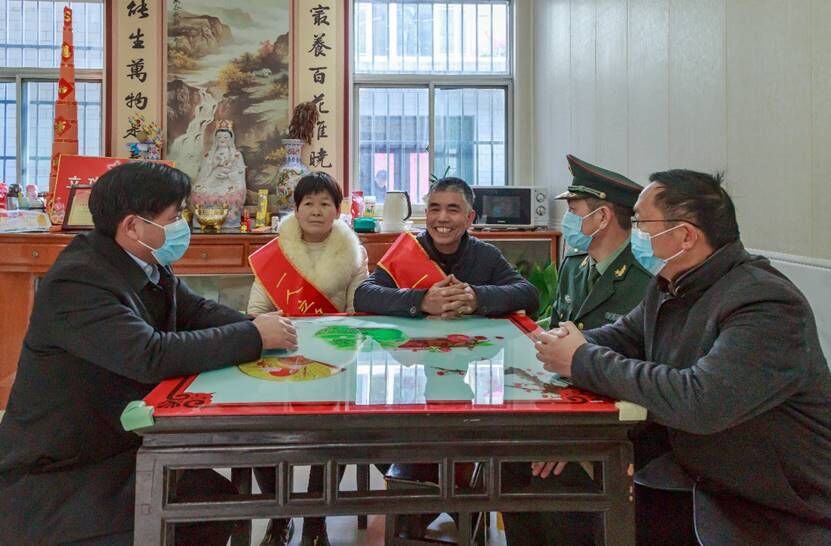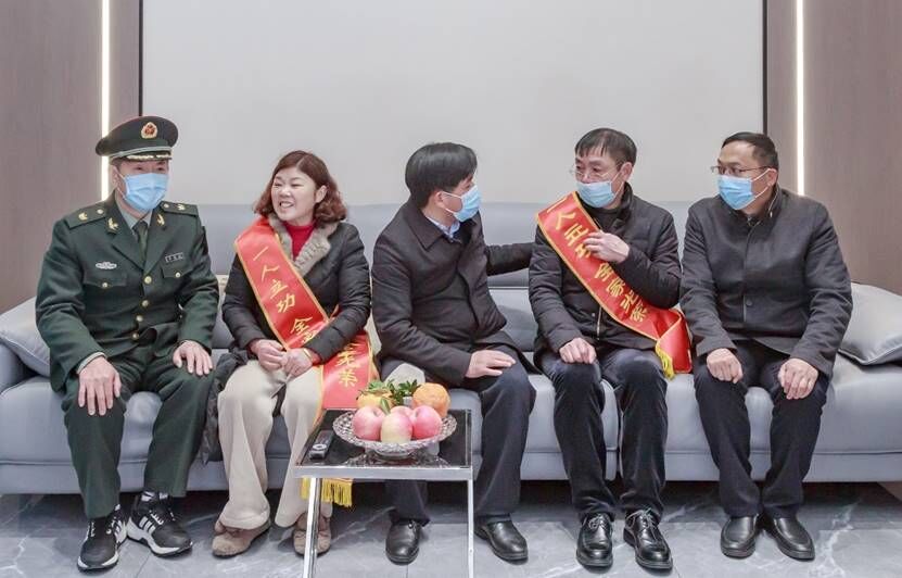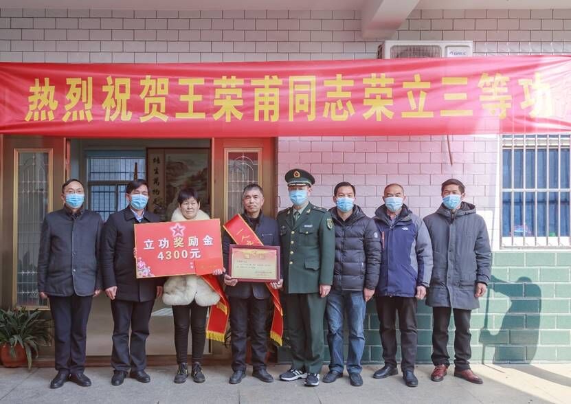 “喜报连军心,尊崇耀家门”。立功喜报一头连着军心士气,一头连着军属荣誉。喜报虽小,却凝结着军人的无私奉献、英勇拼搏,见证了军人的成长进步和忠诚担当,连接了军心士气,影响着千家万户,把喜报送好,就是对军人荣誉的尊崇。每到一处,鞭炮齐鸣,祝贺声声,送喜队伍庄重而热烈,迎着“热烈祝贺王荣甫同志荣立三等功”、“热烈祝贺颜洁同志荣立三等功”醒目横幅,慰问组细心地为家属披上“一人立功,全家光荣”绶带,并颁发喜报、奖励金,慰问组促膝与立功家属亲切交谈,感谢他们为部队培养输送优秀人才,希望他们今后一如既往鼓励孩子在部队发扬优良作风,争取再创佳绩、再立新功,继续为家乡增光添彩。