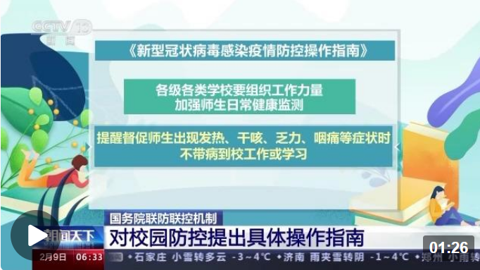 再过几天全国大部分的学校就要开学了,近日,国务院联防联控机制发布《新型冠状病毒感染疫情防控操作指南》,对校园疫情防控做出了一些具体的指导。