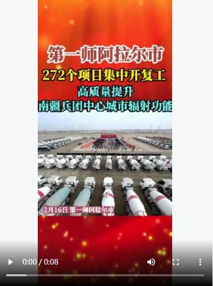 2月16日,新疆生产建设兵团第一师阿拉尔市272个项目集中开复工,高质量提升南疆兵团中心城市辐射功能。