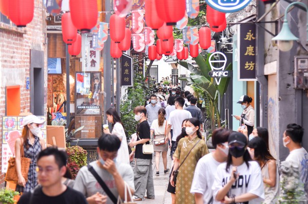 “绣花功夫”之下,永庆坊区域的日均人流由改造前的千人级升至万人级,商铺出租率升至95%,成为了外地游客、文艺青年、老街坊们的热门聚集地,达到了“记得住乡愁、吸引得住年轻人、振兴得起老城”的多重效果。