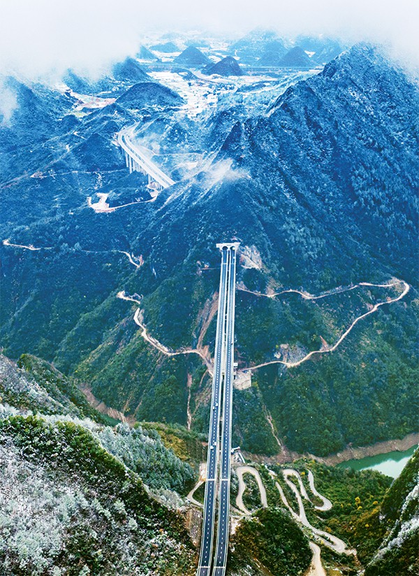 2022年12月28日,全长1220米的贵黄高速公路贵定互通连接线——甘溪特大桥正式通车。图为当日拍摄的甘溪特大桥。 人民图片 邓刚/摄