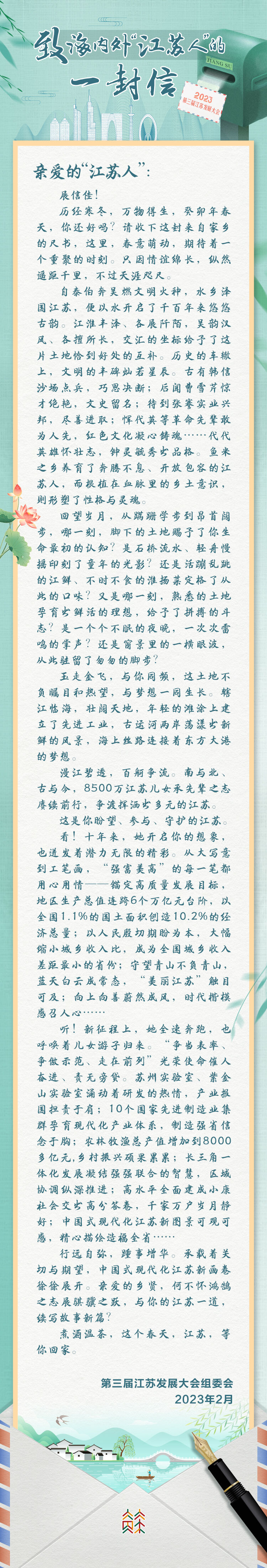 情系江苏 共筑梦想!致海内外“江苏人”的一封信