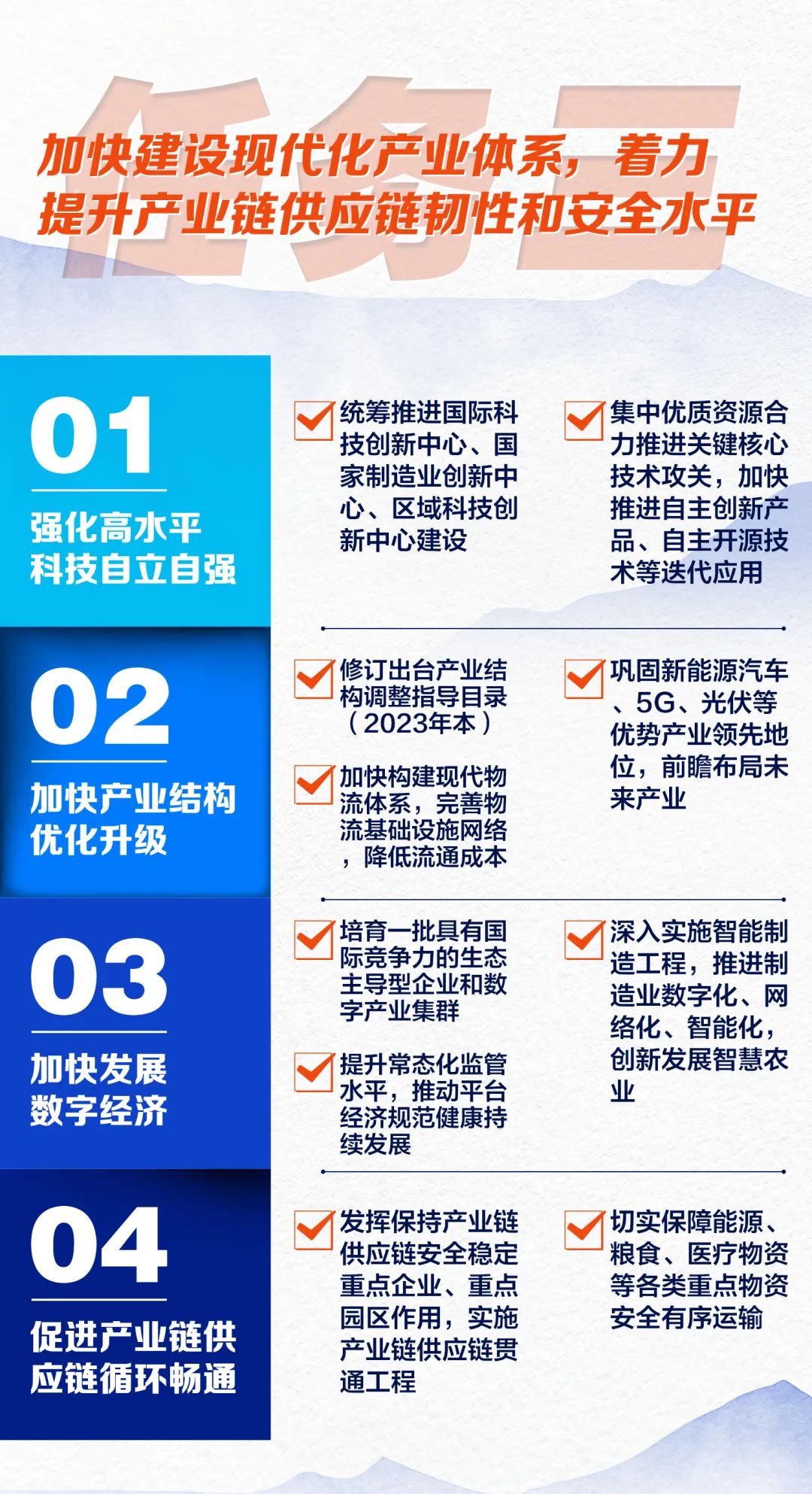 2023年3月5日,第十四届全国人民代表大会第一次会议上政府工作报告提出,今年发展主要预期目标是:国内生产总值增长5%左右;城镇新增就业1200万人左右,城镇调查失业率5.5%左右;居民消费价格涨幅3%左右;居民收入增长与经济增长基本同步。新京报贝壳财经制作《十大任务读懂2023中国经济发展怎么干?》,为你解读今年经济发展密码。