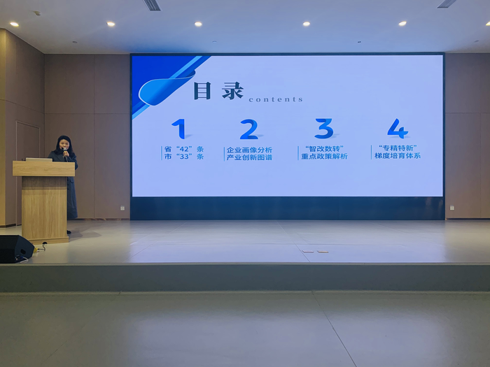 丁老师针对企业各个成长阶段分别列出政策支持图谱,从初创小微阶段、规模上升阶段、高质成熟阶段到龙头领军阶段,分类施策,为企业画像分析,画出政策框架,指明不同阶段的提升方向。并对近期已启动的“专精特新”、智改数转方面的申报要点进行业务指导。