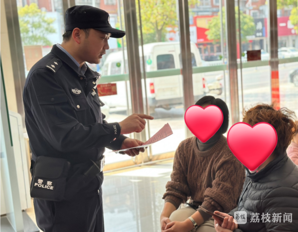 当天,海安市公安局曲塘派出所接到银行工作人员报警称,有位女士神神秘秘地要转账汇款,工作人员怀疑其遇到了电信诈骗。民警当即告诉工作人员一定要拖住,千万不要汇款同时火速赶至现场。