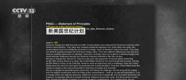 美国资深媒体人士 保罗·杰伊:美国发动伊拉克战争的战略目标,在“新美国世纪计划”中就已经得到阐述了,那就是要推翻(萨达姆)政权。既然已经是世界上的唯一超级大国了,那美国就没有任何理由再纵容这一政权。