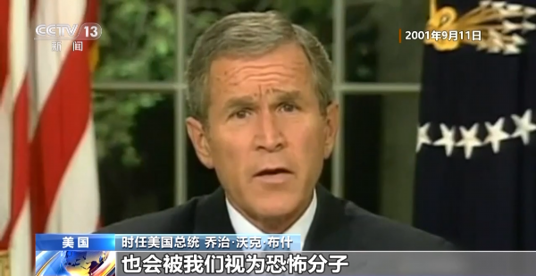 时任美国总统 乔治·沃克·布什:我已下令美国所有的情报机构和警察机构,全力找出肇事元凶并将其绳之以法。胆敢包庇肇事恐怖分子的人也会被我们视为恐怖分子。