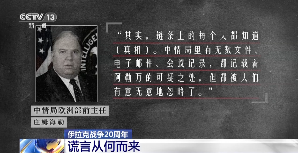 美国中情局前官员 比尔·克里斯蒂森:2001年9月12日,也就是“9·11”的后一天,在白宫战情室举行的会议上,(时任美国国防部长)拉姆斯菲尔德问道,“我们难道不应该借此契机也对伊拉克采取措施吗?”