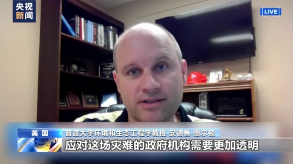普渡大学环境和生态工程学教授 安德鲁·惠尔顿:没有人告诉我们疾控中心的调查人员出现了身体不适,这就是问题所在。应对这场灾难的政府机构需要更加透明与人们分享他们所掌握的信息。因为,一个多月了,人们一直抱怨生病了,但政府的检测结果却一直说空气和水都是安全的,说人们没得病。