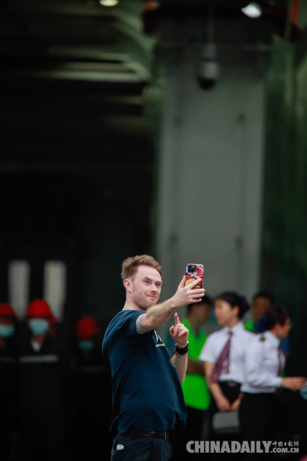 4月10日,“中国有约”采访团英籍网络名人在粤海铁3号火车轮渡拍摄。