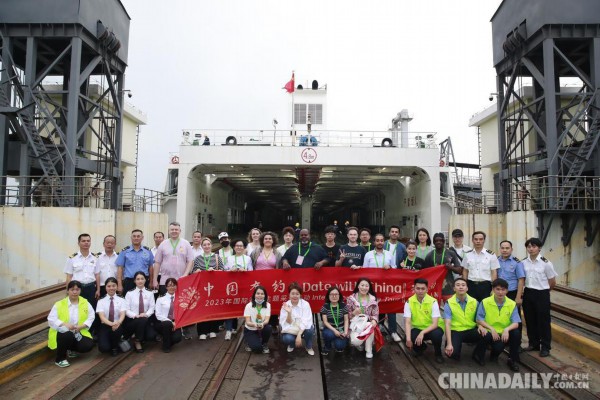 4月10日,“中国有约”采访团走访粤海铁路轮渡。