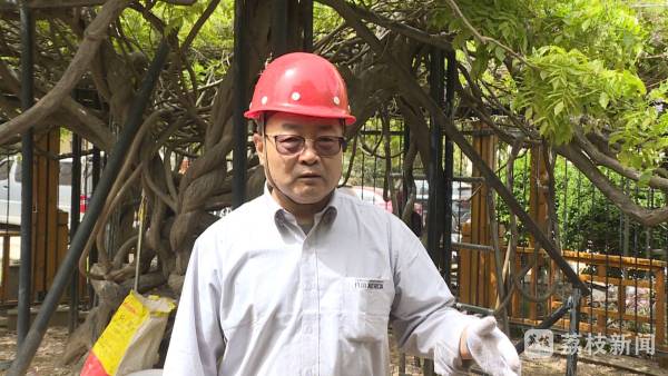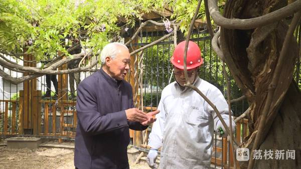 沭阳县住建局在发现紫藤“生病”以后,邀请张用宪到现场进行“把脉问诊”,经过实地“望、闻、问、切”,张用宪很快制定了修复方案。