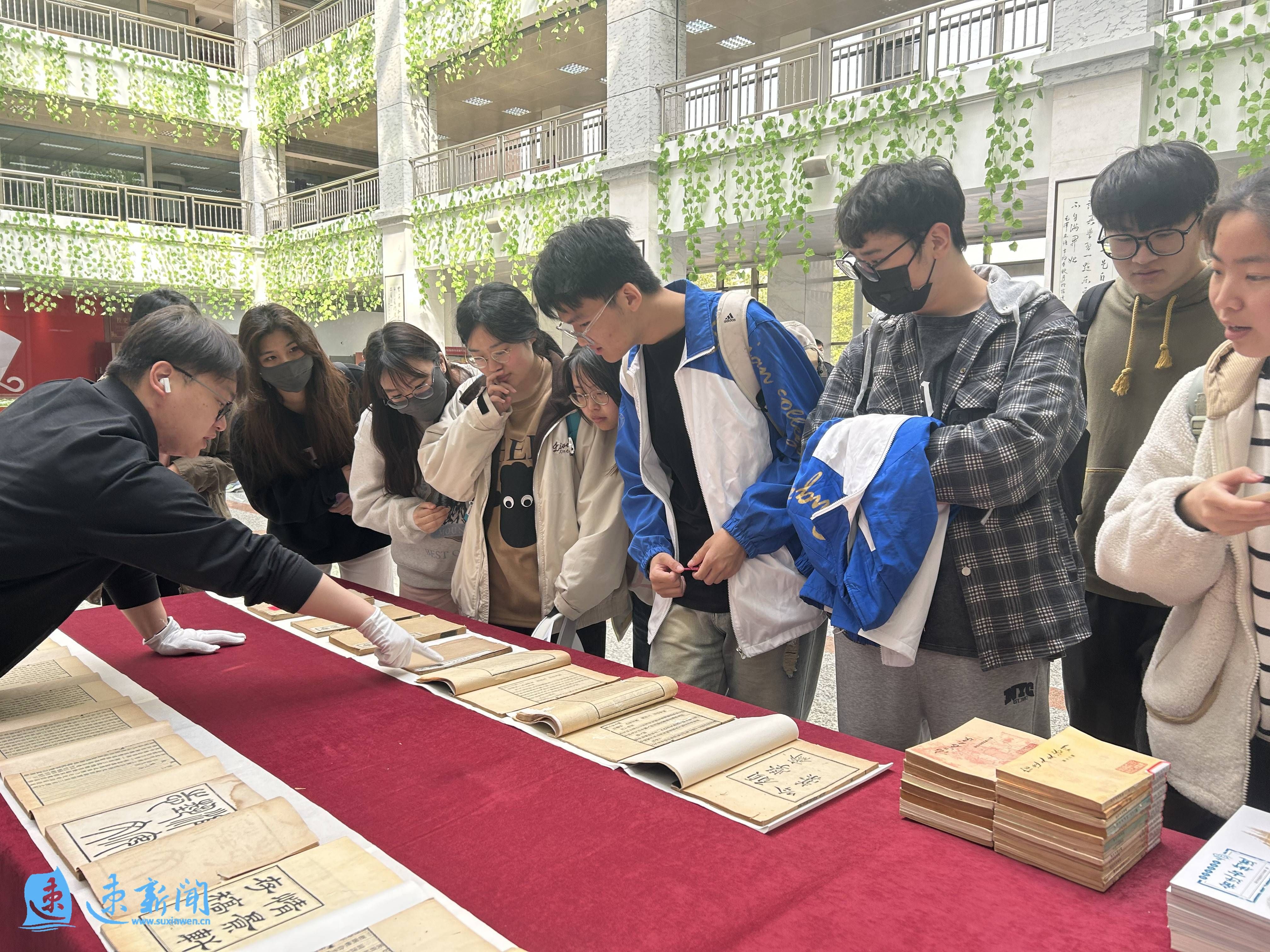 展览期间,宿迁学院师生纷纷前来观展,很多师生都是第一次与古籍“零距离”接触。在现场工作人员的讲解下,大家对古籍有了更加直观深入的了解,也切身感受到了中华传统文化的博大精深和无穷魅力,参加活动的同学纷纷表示这是一次非常有意义的活动。