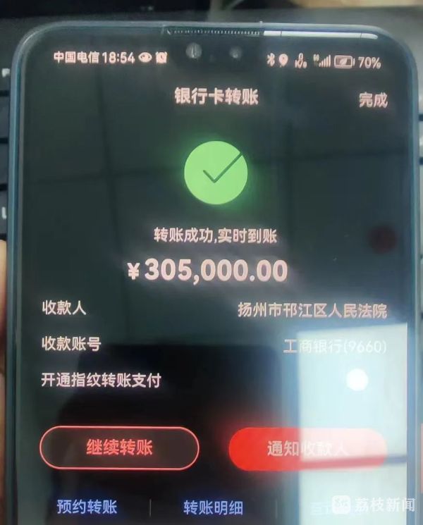 今天(4月14日),记者获悉,随着一笔30余万元执行款项打入扬州邗江法院账户,一起历时数年的机动车交通事故责任纠纷就此画上句号。在执行干警的不懈努力下,案涉标的均已执行到位,有力维护了申请执行人的合法权益。