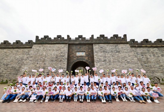 为何将集体婚礼的地点选择在扬州?赵楠介绍,中国铁建大桥局在全国有400多个项目,扬州是其中之一。一开始集体婚礼举办的候选地点有三亚、重庆、大连和扬州,最终通过青年员工集团微信公众号进行投票,大多数新人都投了扬州。“一方面扬州是历史悠久的文化名城,有着深厚的文化底蕴。同时,中国铁建大桥局承建的沪宁高铁十一标项目就在扬州,员工们都认为在项目工地上举办集体婚礼更有意义。”