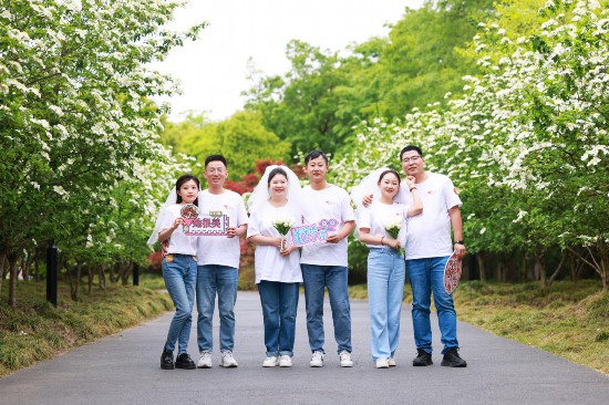 “都说烟花三月下扬州,能在扬州最美的季节举办婚礼,在来自五湖四海的同事的见证下,许下相伴一生的诺言,我们觉得是非常有意义的。”来自天津的“90后”王胜利、尹洁夫妇说。