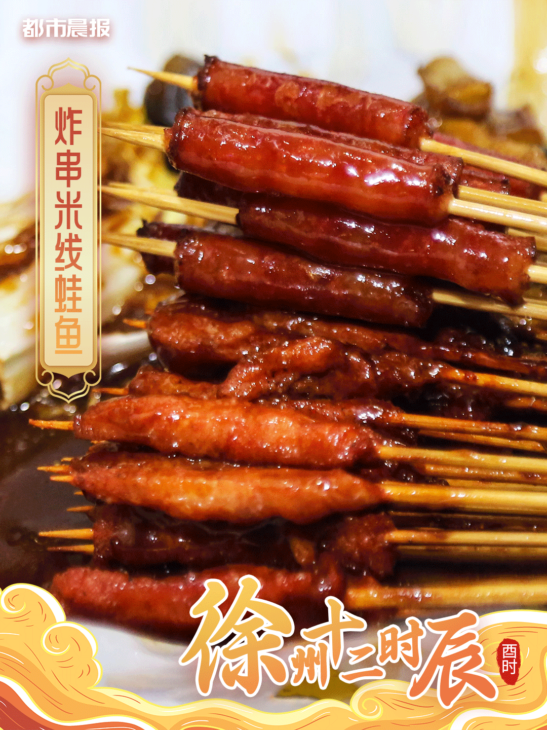 徐州米线之多,多到每个人家楼下都有至少一家米线店。大骨熬制汤底,鲜、浓、香,配上鲜亮的辣椒油,让人食欲大增。再配上炸串和蛙鱼,绝对是地道徐州味!