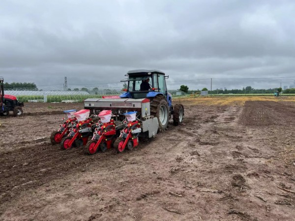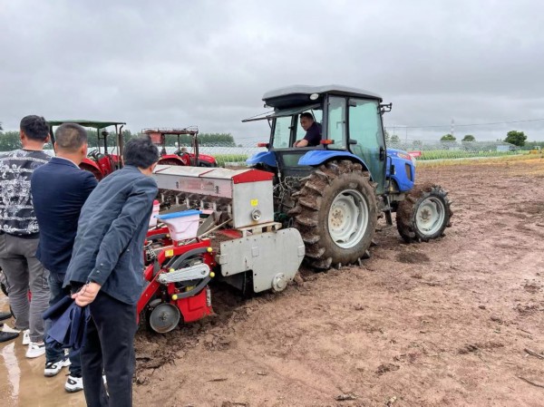 上午9时,凉风裹着细雨,吹散了前两天的闷热。在丹徒区世业镇卫星村的镇江农谷农业园科技有限公司基地,两台拖拉机停放在农田之中,后面还“牵”着色彩鲜红的大豆玉米带状复合种植专用播种机。在现场专家对设备进行简单讲解后,一位农业大户自告奋勇地驾驶着设备下田演示,雨中湿润的土壤上,留下了一道道清晰的播种痕迹。