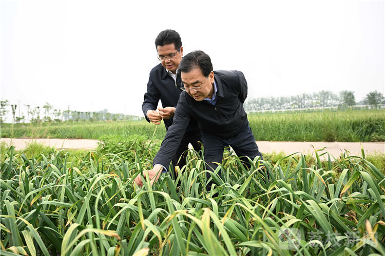 调研途中,信长星随机来到黄河故道、田间地头,察看河道水域岸线状况和小麦、大蒜等农作物长势,要求建设好生态富民廊道,全力抓好农业生产。